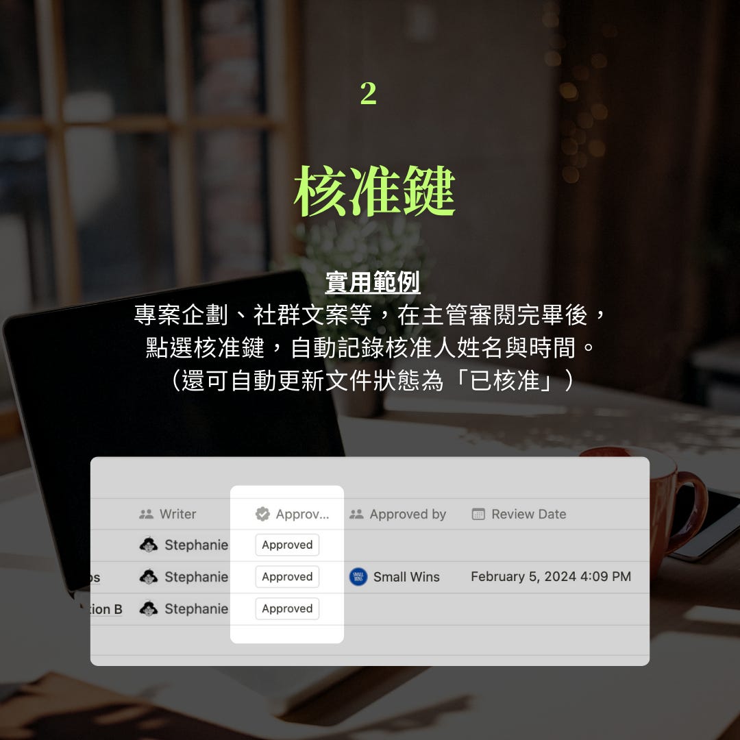 prop("Upvoted").length()2. 幫助團隊協作——核准鍵