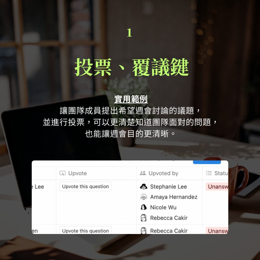 舉例來說,如果你的團隊有定期的週會或月會,在會議前,可讓團隊成員提出他們希望討論的議題並投票。
